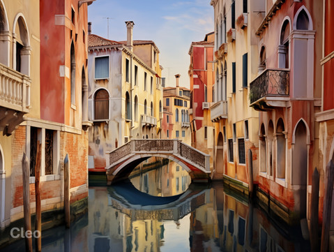 Neo-Romantic Canals and Buildings Beckon Viewers into a Whispered Tale of Elegance, as Soft Brushstrokes Unveil the Timeless Beauty of Venetian Architecture, Creating a Sublime Symphony of Nostalgia and Romantic Charm.